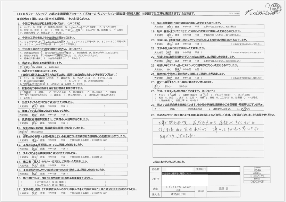 工事が終わった後、近所の方から屋根がすごくキレイになりましたねと言われたので、工事をしてよかったと思いました。ありがとうございました。