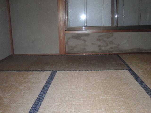 | リフォーム中の様子になります。畳を撤去し、壁には、 クロスを貼るための下地をつくります。 |